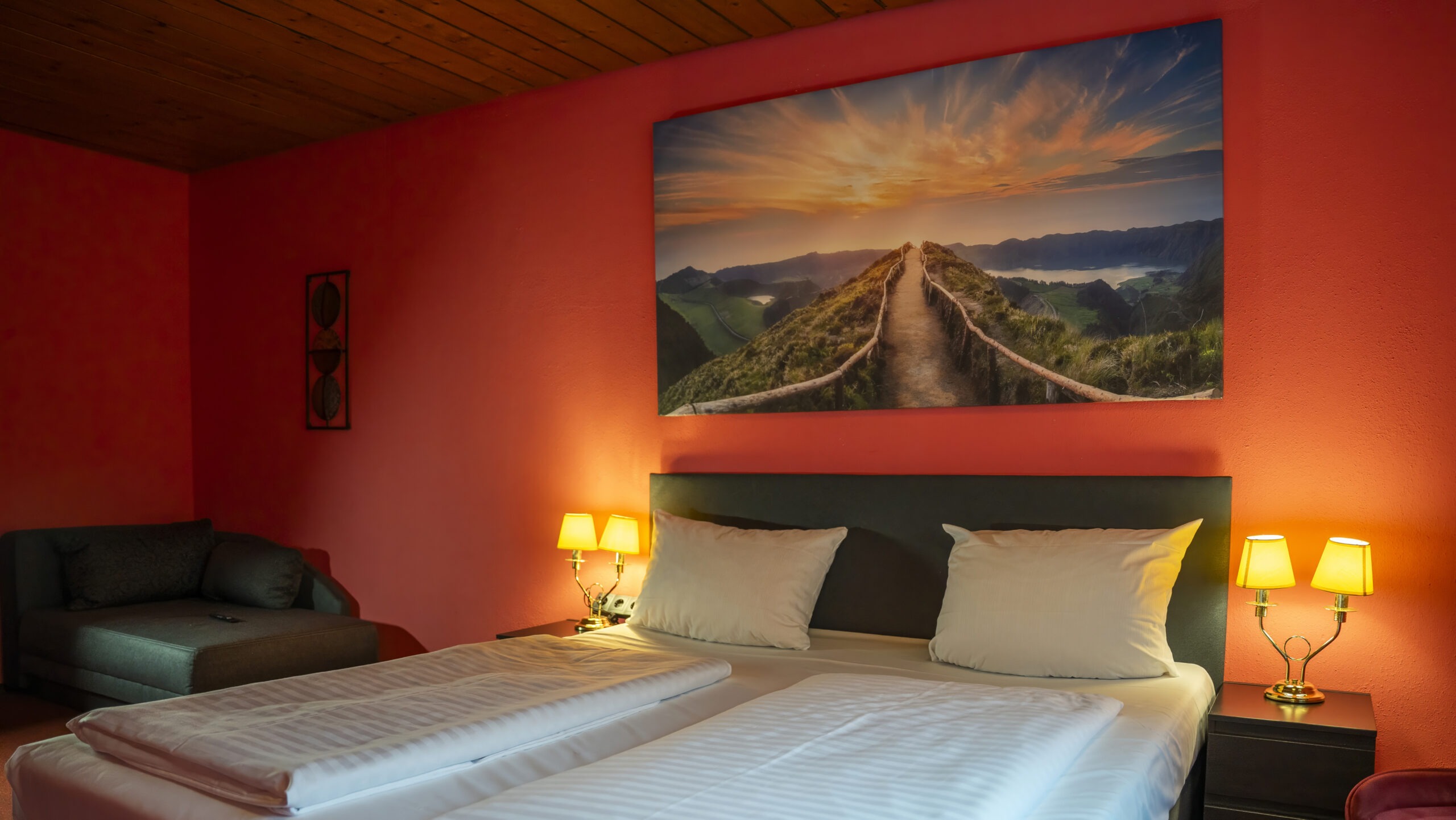 Doppelzimmer: 17qm Perfekt für bis zu 2 Personen Unsere mit viel Liebe zum Detail gestalteten Doppelzimmer laden Sie zum rundum Wohlfühlen ein. Die komfortable Ausstattung beinha